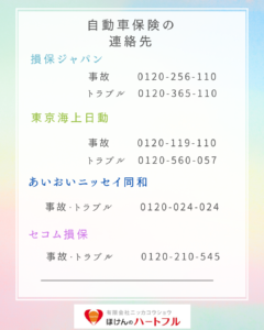 また自動車事故緊急時の連絡先は